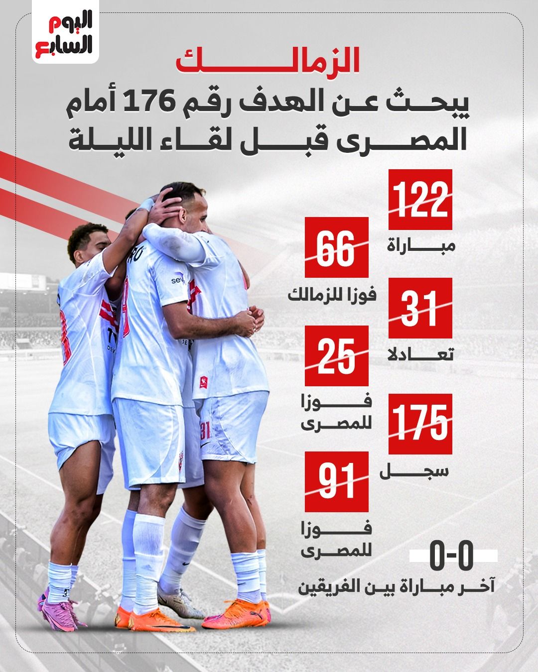 الزمالك يبحث عن الهدف الـ176 أمام المصري فى مواجهة الليلة.. إنفوجراف