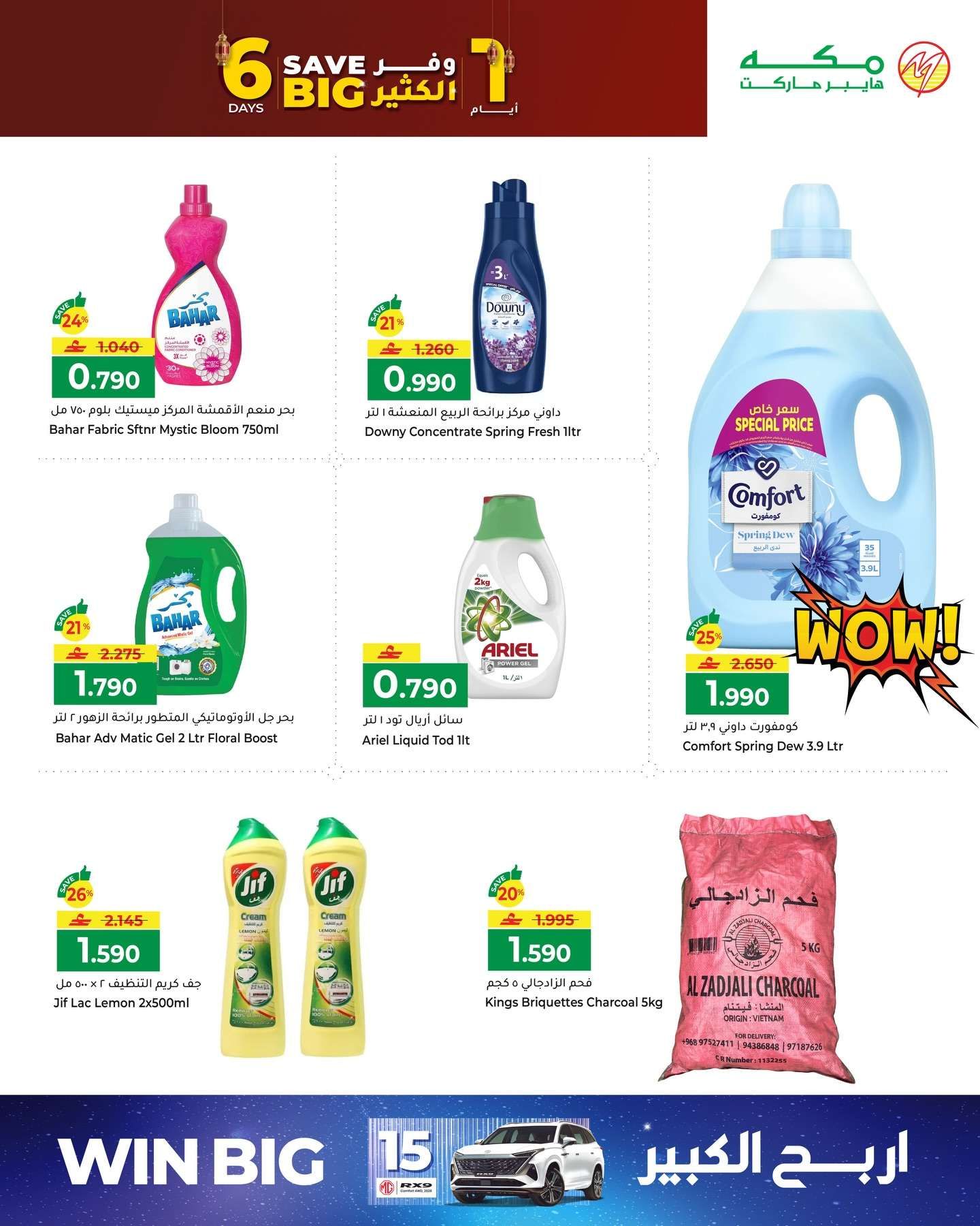 عروض مكة هايبر ماركت لشهر رمضان 1 فبراير 2026 اقوى العروض الخاصة و تخفيضات متنوعة على مقاضي المنزل الاساسيه لشهر الخير وايضا هناك سحوبات وجوائز و فرص لربح جوائز كبيره لا تفوتوا افضل العروض في جميع الفروع وهذه العروض تسري حتى 4 فبراير 2026 و ايضا تسوّق بقيمة 5 ريال فقط وادخل السحب للفوز بجوائز ضخمة 15 سيارة MG RX9 و 150 جائزة مميزة السحب ساري من 22 يناير حتى 21 أبريل 2026