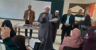 الأحد، 01 فبراير 2026 11:55 متابع الشيخ شعبان مرعي، رئيس الإدارة المركزية لمنطقة الوادي الجديد الأزهرية، اليوم الأحد، انطلاق ورش عمل تحليل المحتوى وتصميم خرائط المنهج بإدارة الخارجة التعليمية، في مواد العلوم الشرعية، والعلوم، والكيمياء، والفيزياء، والأحياء، حيث رافق فضيلته خلال الزيارة عمر حسن مدير إدارة التدريب و محمد مسلم مدير التعليم الإعدادي.
