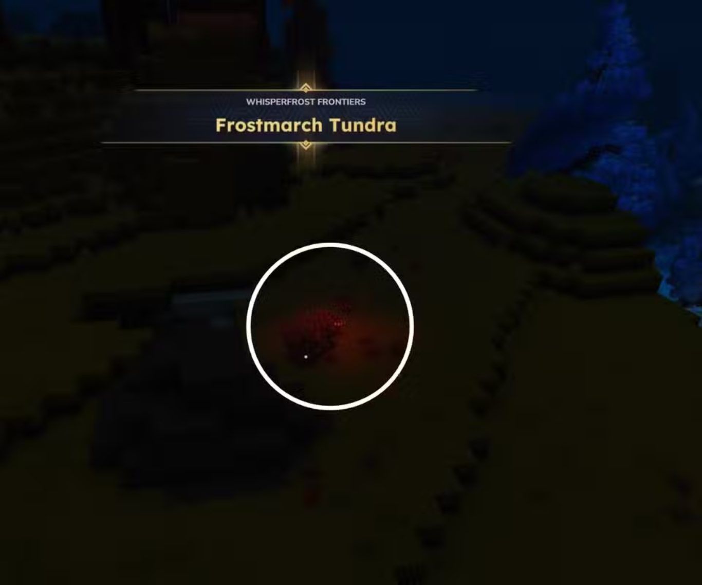تظهر Frostmarch Tundra على الخريطة كلون أصفر باهت يميزها بصريا عن الغابات الخضراء الكثيفة من جهة والسهول الثلجية المفتوحة من جهة أخرى وهو ما يجعل التعرف عليها سهلا أثناء الاستكشاف.