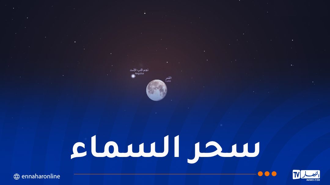 وحسب بيان لمركز البحث في علم الفلك والفيزياء الفلكية والفيزياء الأرضية، سيتمكن عشاق السماء في اتجاه الجنوب الغربي من مشاهدة تقارب القمر من نجم قلب الأسد لكوكبة الأسد على ارتفاع 55 درجة من الأفق.
