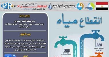 الإثنين، 02 فبراير 2026 08:23 مأعلنت شركة مياه الشرب والصرف الصحى بسوهاج عن قطع المياه بقرى الظهير الصحراوى وهى عرب الصبحة وحلوان وعزبة رضوان وصديق المنشاوى بمركز دار السلام غدا الثلاثاء فى تمام السادسة صباحا وحتى الحادية عشر صباحا ولمدة 5 ساعات، صرح بذلك المهندس محمد صلاح الدين عبد الغفار رئيس مجلس الإدارة والعضو المنتدب وأضاف أنه يتم خلال تلك الفترة القيام بأعمال تنفيذ قطعية 8 بوصة على 12 بوصة بخط طرد محطة الشيخ بطيخ الارتوازى.
