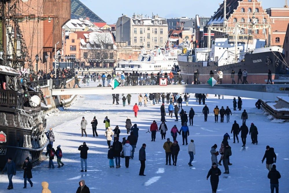 شهدت مدينة غدانسك فى بولندا تجمد نهر موتلاوا، حيث ظهر النهر بلون الثلج فيما رست المراكب وتوقفت حركة الإبحار، وذلك حسبما رصدت وكالة الأنباء الأوروبية صورا.