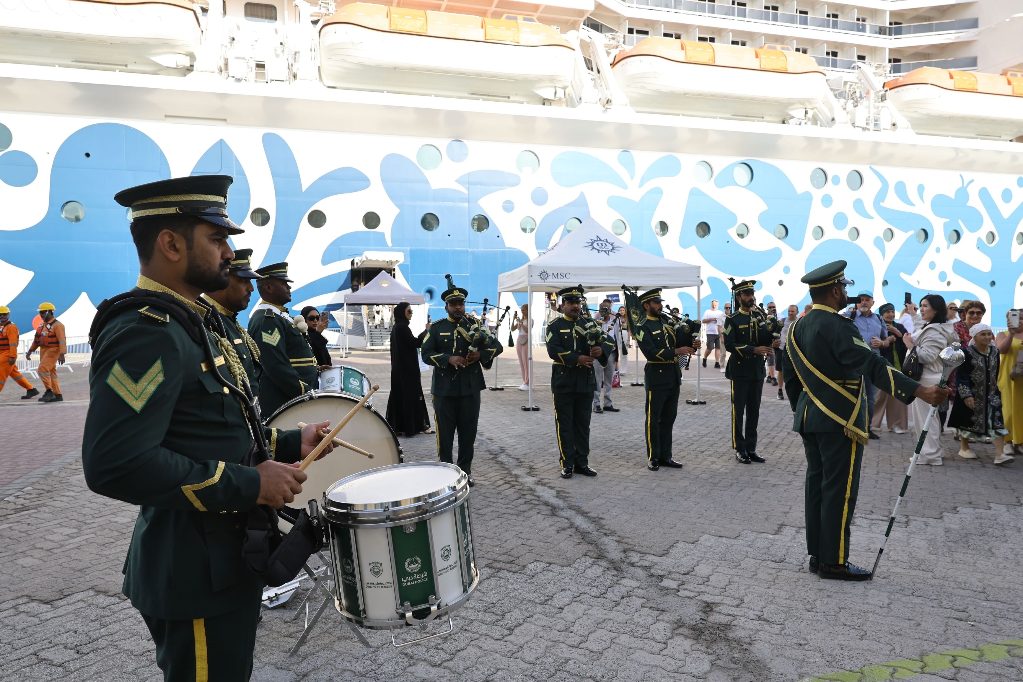 نظمت القيادة العامة لشرطة دبي، ممثلة في إدارة الشرطة السياحية، استقبالاً مميزاً لنحو 7000 زائر، بينهم 5400 سائح و1600 من طاقم سفينة "MSC Cruises" العملاقة فور وصولها ميناء راشد، وذلك ضمن فعاليات مبادرة "فرحة سائح" التي أطلقتها الشرطة لتقديم تجربة استثنائية للزوار وترسيخ مكانة الإمارة كواحدة من أكثر الوجهات العالمية أمانا وضيافة.