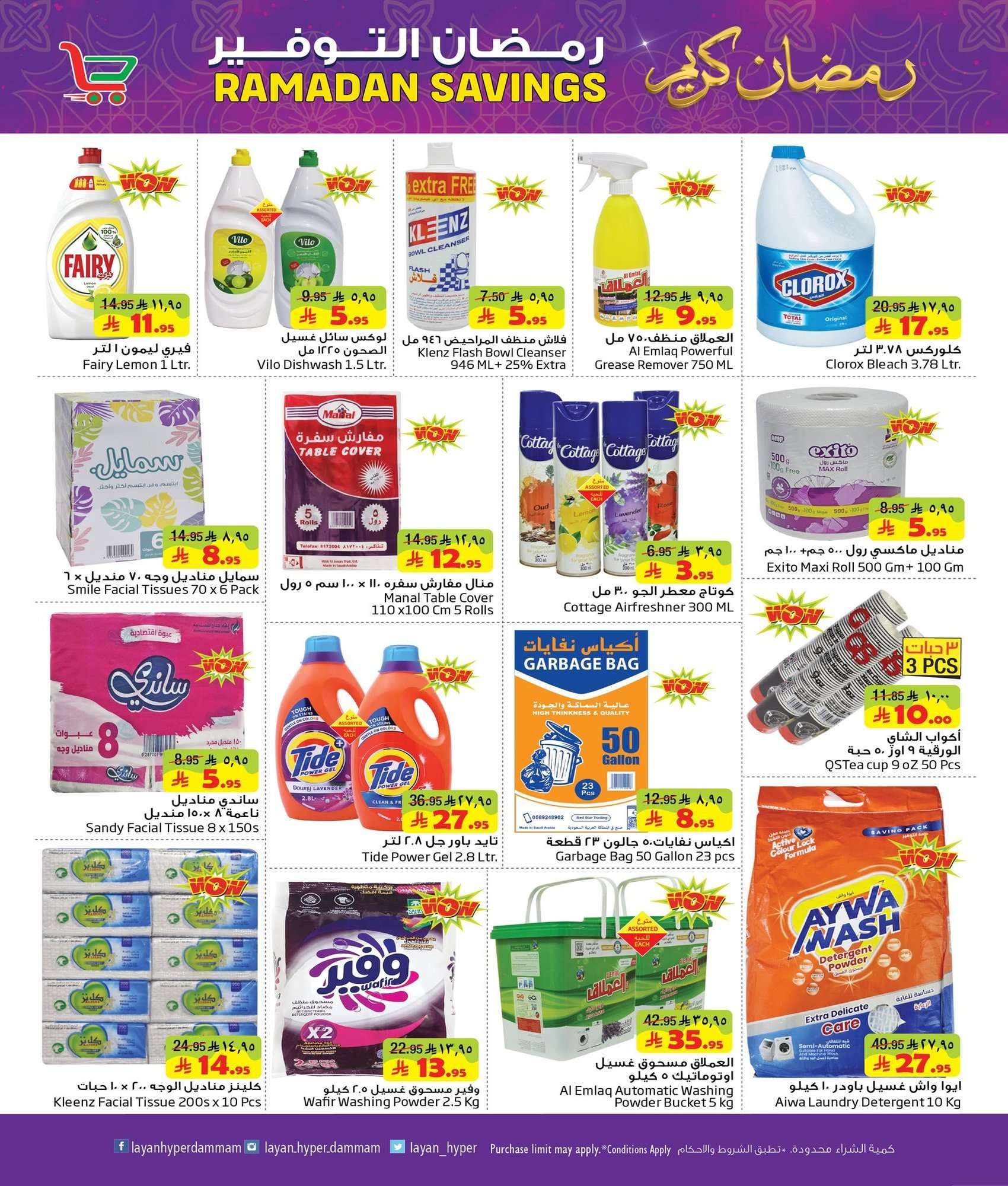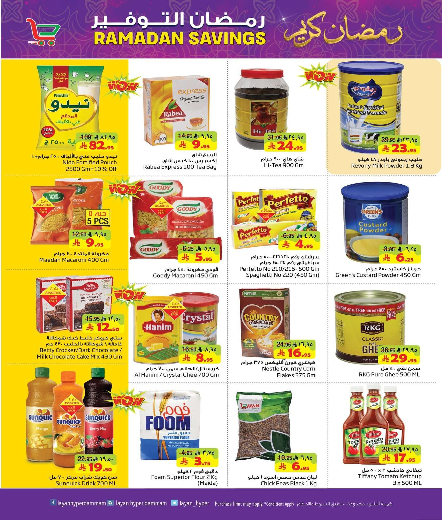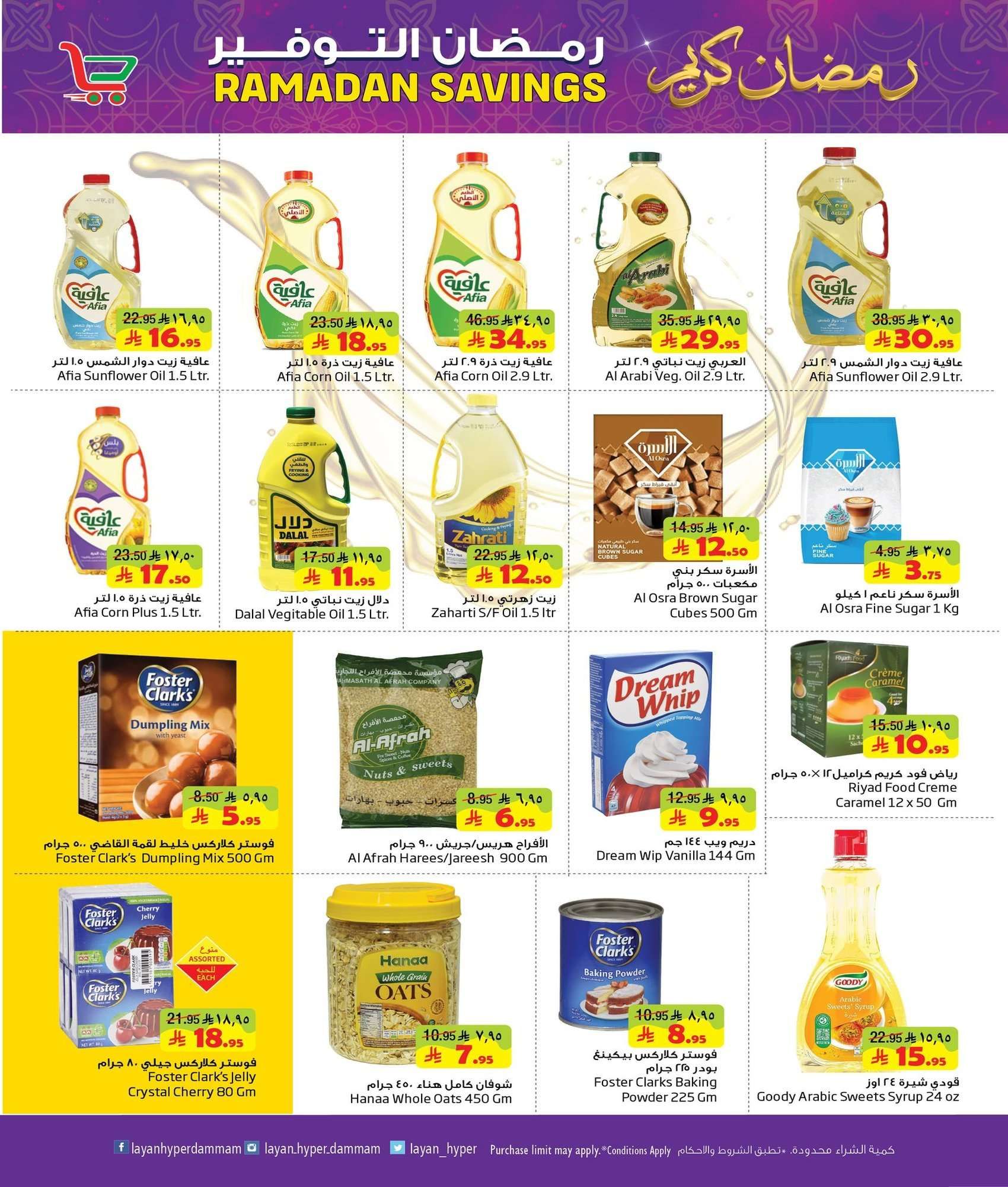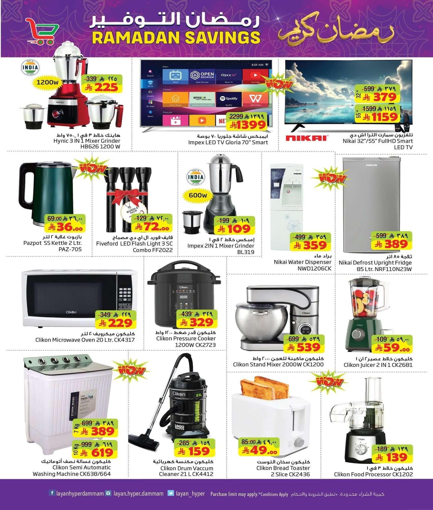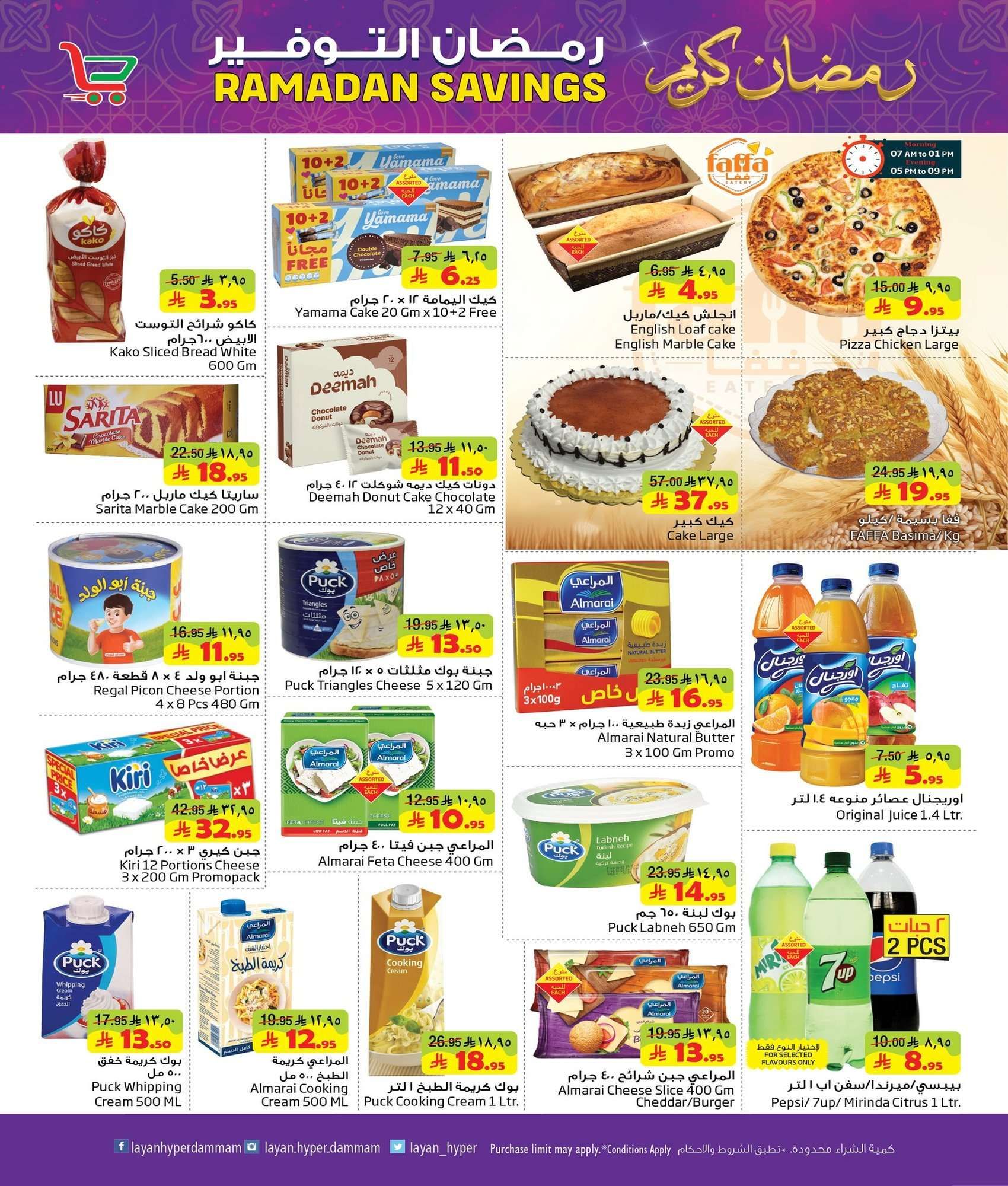 عروض ليان هايبر ماركت الأربعاء 16 شعبان 1447هـ الموافق 4-2-2026 تحتوي الأجهزة على ماكينة إسبريسو قلاية هوائية محضرة طعام فرن كهربائي غسالة صحون ميكروويف مروحة رذاذ وصانعة ثلج وسخان بوفيه ومبرد مياه و يقدم ايضا سلمون مدخن جبن بارميزان زيت أفوكادو كرواسون صدور دجاج لحم بقري فاكهة حلويات شوكولاتة قهوة أرز وزيت وسكر وشاي