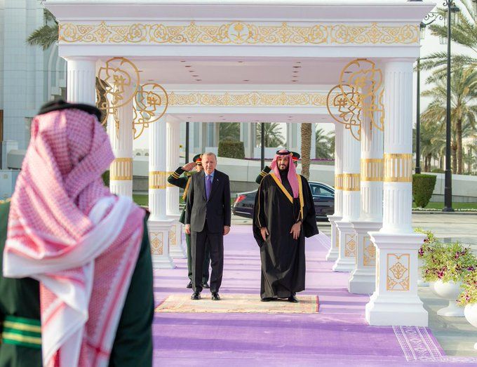 استقبل صاحب السمو الملكي الأمير محمد بن سلمان بن عبدالعزيز آل سعود ولي العهد رئيس مجلس الوزراء، بالديوان الملكي في قصر اليمامة بالرياض مساء اليوم، فخامة الرئيس رجب طيب أردوغان رئيس جمهورية تركيا.
