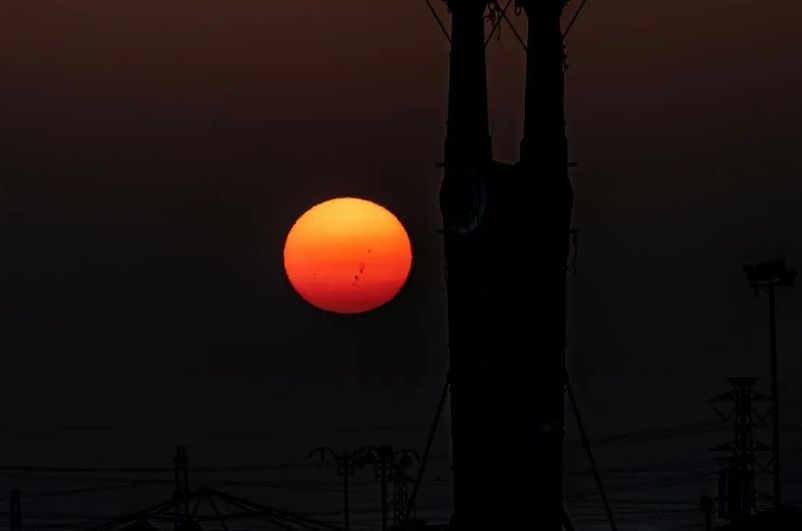 رُصدت مساء اليوم الثلاثاء، من سماء مدينة عرعر بمنطقة الحدود الشمالية بقعٌ شمسيةٌ كبيرة ظهرت بوضوح على قرص الشمس.