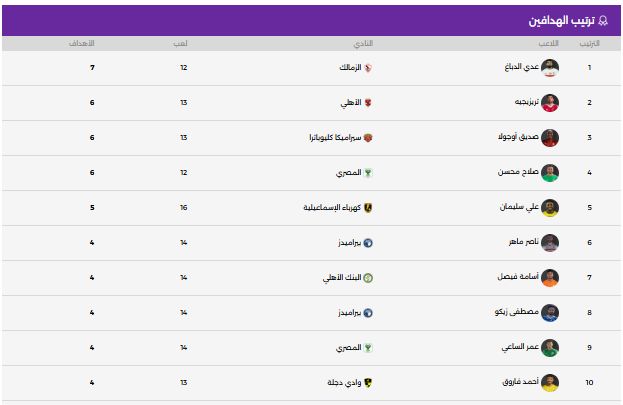 جدول ترتيب هدافى الدورى المصرى.. عدى الدباغ ينفرد