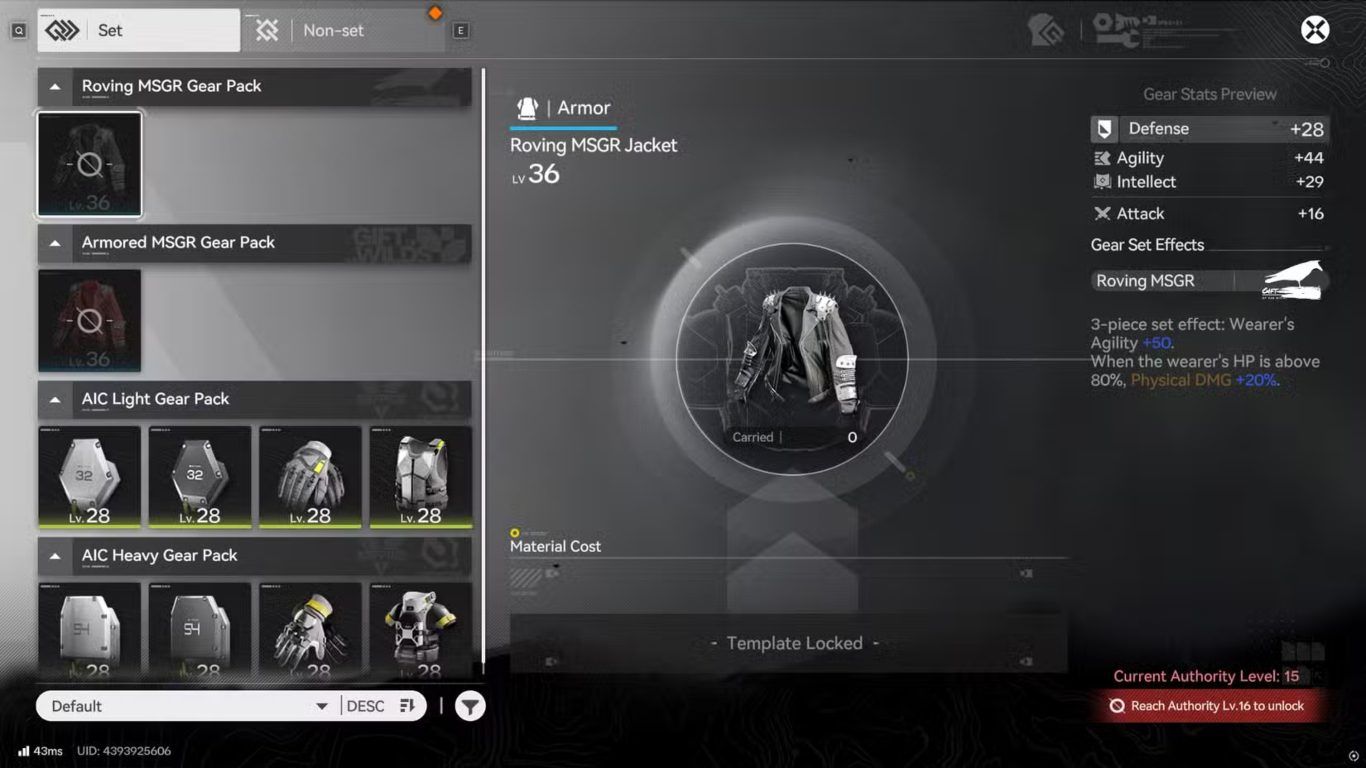 في المراحل الأولى من لعبة Arknights Endfield يبدأ اللاعب في فتح مجموعة متنوعة من Gear Templates الأساسية بشكل تدريجي مع زيادة Authority Level حيث يعد هذا المستوى مؤشرا رئيسيا على تقدم اللاعب داخل اللعبة وكلما ارتفع زادت الخيارات المتاحة من قوالب العتاد التي يمكن استخدامها في تطوير الشخصيات.