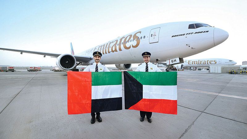 ولفتت «طيران الإمارات» إلى أنه في يوم الثاني من فبراير، قاد الرحلة «إي كيه 855» كابتن طيار كويتي الجنسية، الكابتن حسين العبدالمحسن، إلى جانب مساعد طيار إماراتي، إسحاق عبدالله، في دلالة رمزية تعكس روح التعاون والقيم المشتركة والشراكة العميقة والمتجذرة التي تربط البلدين وشعبيهما.
