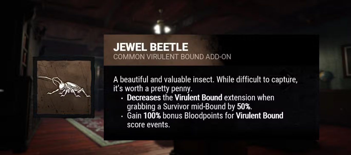 بفضل تأثيرها الخفي وقدرتها على تغيير مجريات المطاردة بشكل واضح تعتبر إضافة Jewel Beetle من الإضافات الفعالة لشخصية The Mastermind في لعبة Dead By Daylight خاصة لمن يسعون إلى تحويل كل استخدام لـ Virulent Bound إلى فرصة حاسمة لإسقاط الناجين.