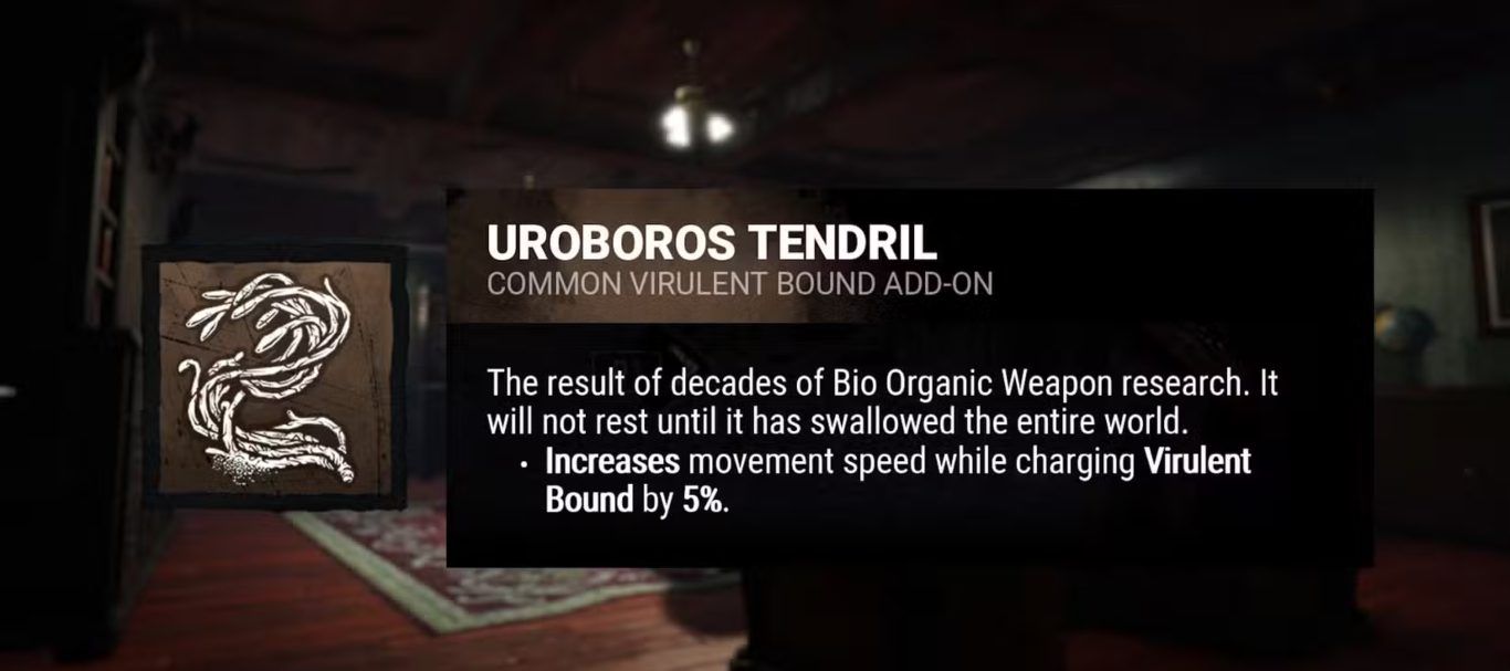 تعمل إضافة Uroboros Tendril على مساعدة The Mastermind في الحفاظ على المسافة المثالية بينه وبين الناجين أثناء شحن القدرة مما يقلل من فرص فقدان الهدف قبل تنفيذ الاندفاع.
