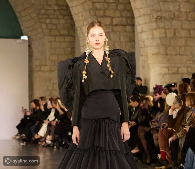 - الصدريات ذات البنية المعمارية كانت تُقابل بتنانير خفيفة الحركة، ما خلق تباينًا ذكيًا بين الثبات والانسياب، كل درزة، كل طية، بدت وكأنها قرار محسوب يعكس سيطرة كاملة على الشكل والمعنى معًا.