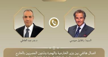 تلقى د. بدر عبد العاطي وزير الخارجية والهجرة وشئون المصريين بالخارج اتصالا هاتفيا من رافائيل جروسى المدير العام للوكالة الدولية للطاقة الذرية اليوم الخميس، حيث بحث الجانبان تطورات الملف النووي الإيراني وجهود خفض التصعيد في المنطقة.