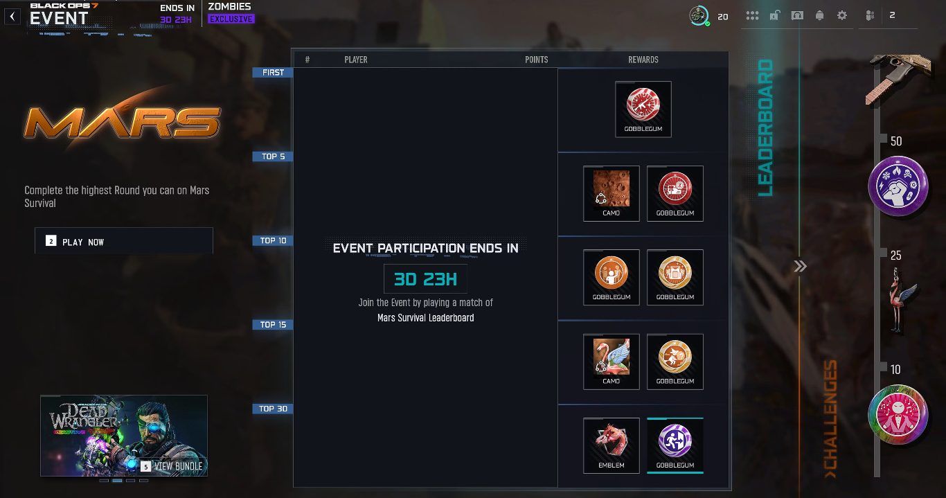 مكافآت لوحة الصدارة في حدث Mars Leaderboard في لعبة Black Ops 7 Zombies