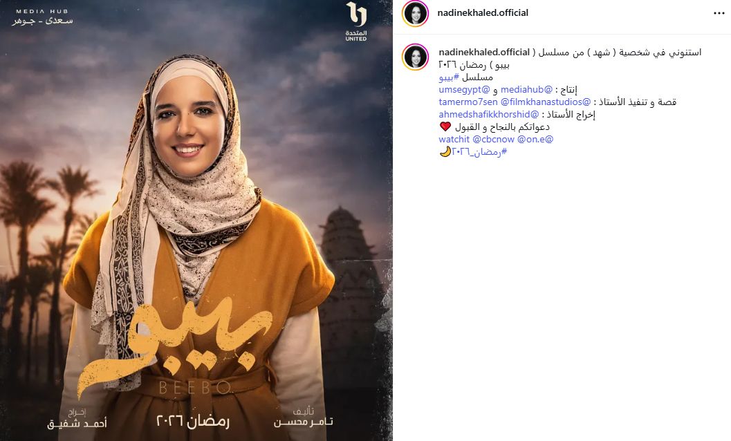 وأكدت نادين، أنها ستجسد شخصية "شهد" ضمن أحداث المسلسل، حيث كشفت عن ذلك عبر حسابها الرسمي على موقع إنستجرام، وكتبت: "استنوني في شخصية (شهد) من مسلسل بيبو رمضان 2026"، وظهرت نادين في البوستر الرسمي وهي مرتدية الحجاب، ما يعكس ملامح الشخصية التي ستجسدها.