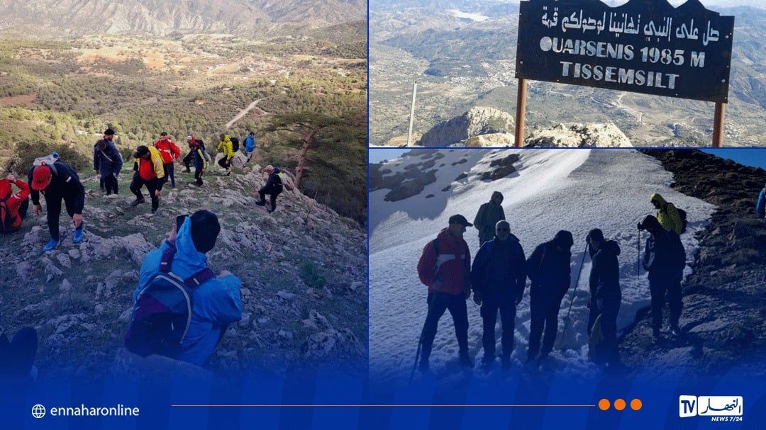 وتُعد جبال الونشريس (Ouarsenis) من أبرز السلاسل الجبلية في الأطلس التلي الغربي، حيث تتميز بغاباتها الكثيفة، وتضاريسها الوعرة، ومناظرها البانورامية الخلابة. وقد تمكّن الشباب من بلوغ أعلى قمة في السلسلة بارتفاع يقارب 1985 مترًا عن سطح البحر، إضافة إلى الوصول إلى قمة أخرى تقارب 1700 متر، في مسار تطلّب عزيمة وصبرًا وروح فريق عالية.