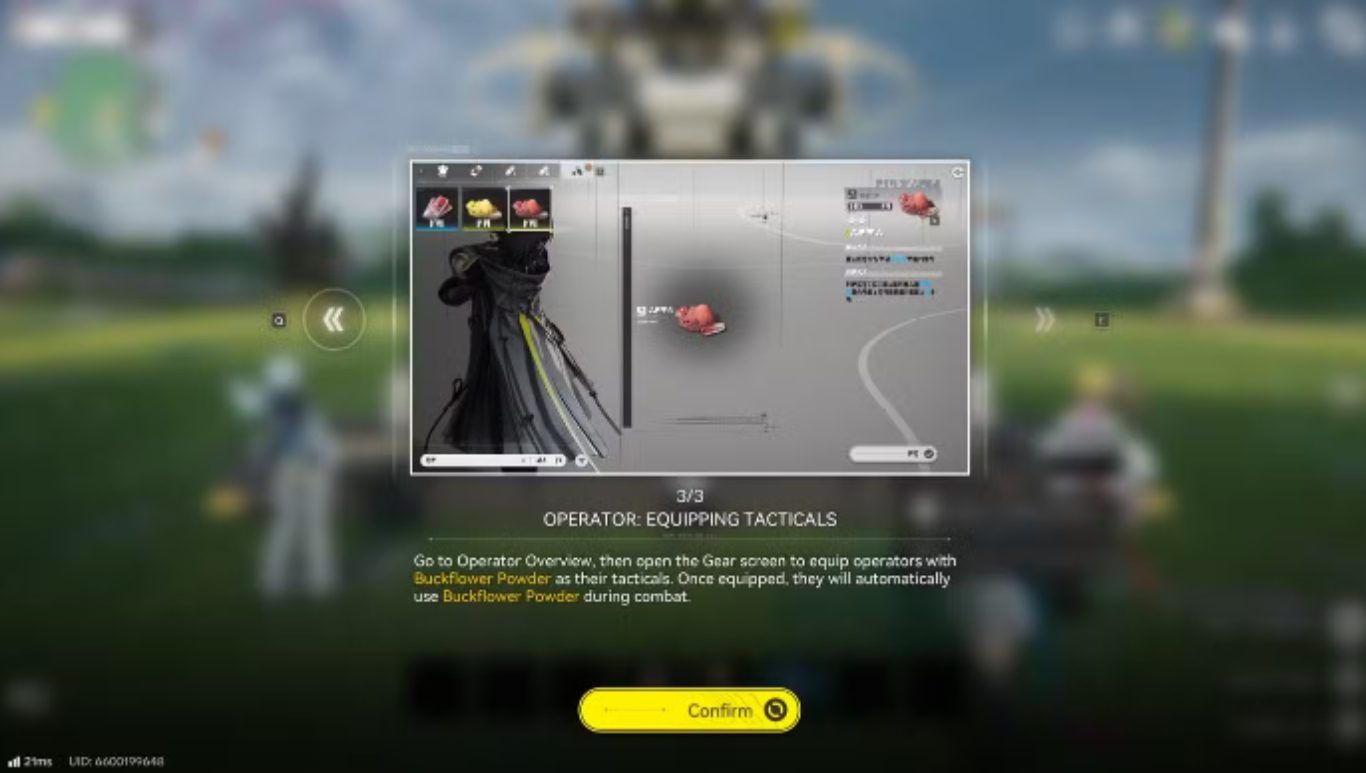 إلى جانب Rest يمكن علاج Operators باستخدام عناصر علاجية مخصصة مثل Buckflower Powder و Jincao Drinks والتي توفر استعادة فورية لنقاط HP أثناء القتال أو خلال الاستكشاف بعيد المدى.