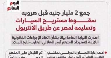 ملحوظة: مضمون هذا الخبر تم كتابته بواسطة اليوم السابع ولا يعبر عن وجهة نظر مصر اليوم وانما تم نقله بمحتواه كما هو من اليوم السابع ونحن غير مسئولين عن محتوى الخبر والعهدة علي المصدر السابق ذكرة.