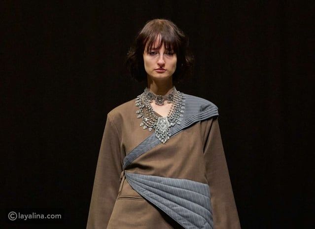 - هذا التعامل مع المواد أفرز لغة ملمسية غنية، حيث تتجاور الأقمشة الثقيلة مع الخفيفة، والناعمة مع الخشنة، في توازن مدروس. تظهر آثار الخياطة اليدوية بوضوح، لا كعيب، بل كدليل على رحلة القطعة من المشغل إلى منصة العرض.