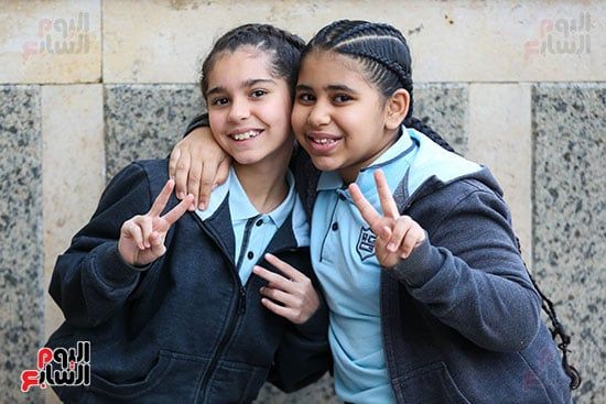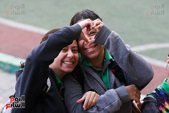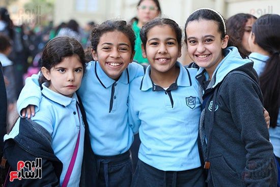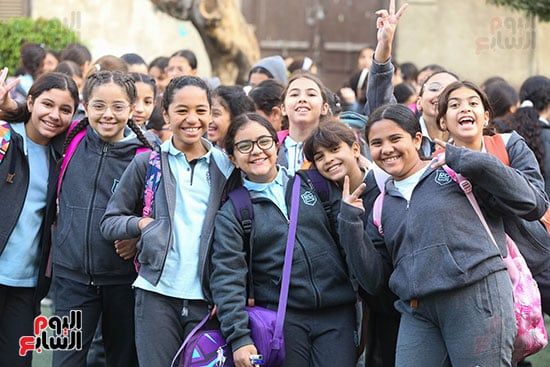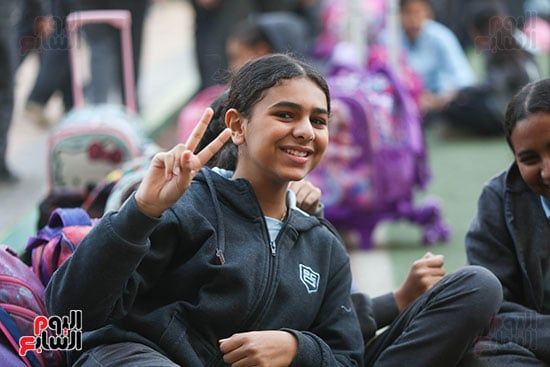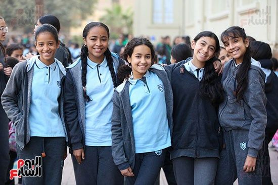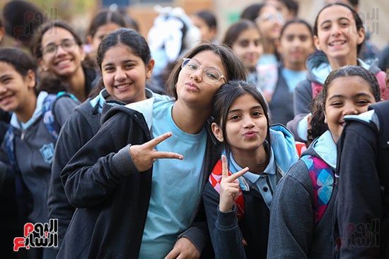 فرحة الطالبات فى بداية الفصل الدراسي الثاني