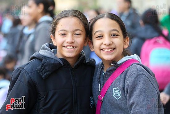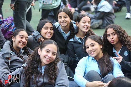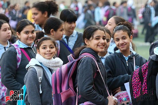 فرحة الطالبات فى بداية الفصل الدراسي الثاني