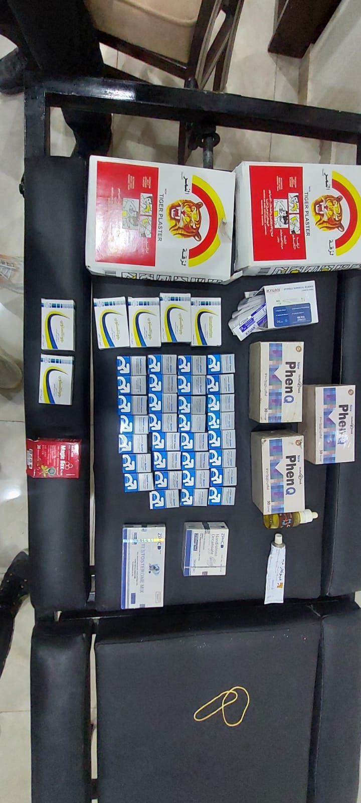 وعلى الفور تم تحرير محاضر بانتحال صفة أخصائي علاج طبيعي، إلى جانب محاضر بالمخالفات الدوائية، واتخاذ الإجراءات القانونية اللازمة، والعرض على قسم شرطة نبروه.