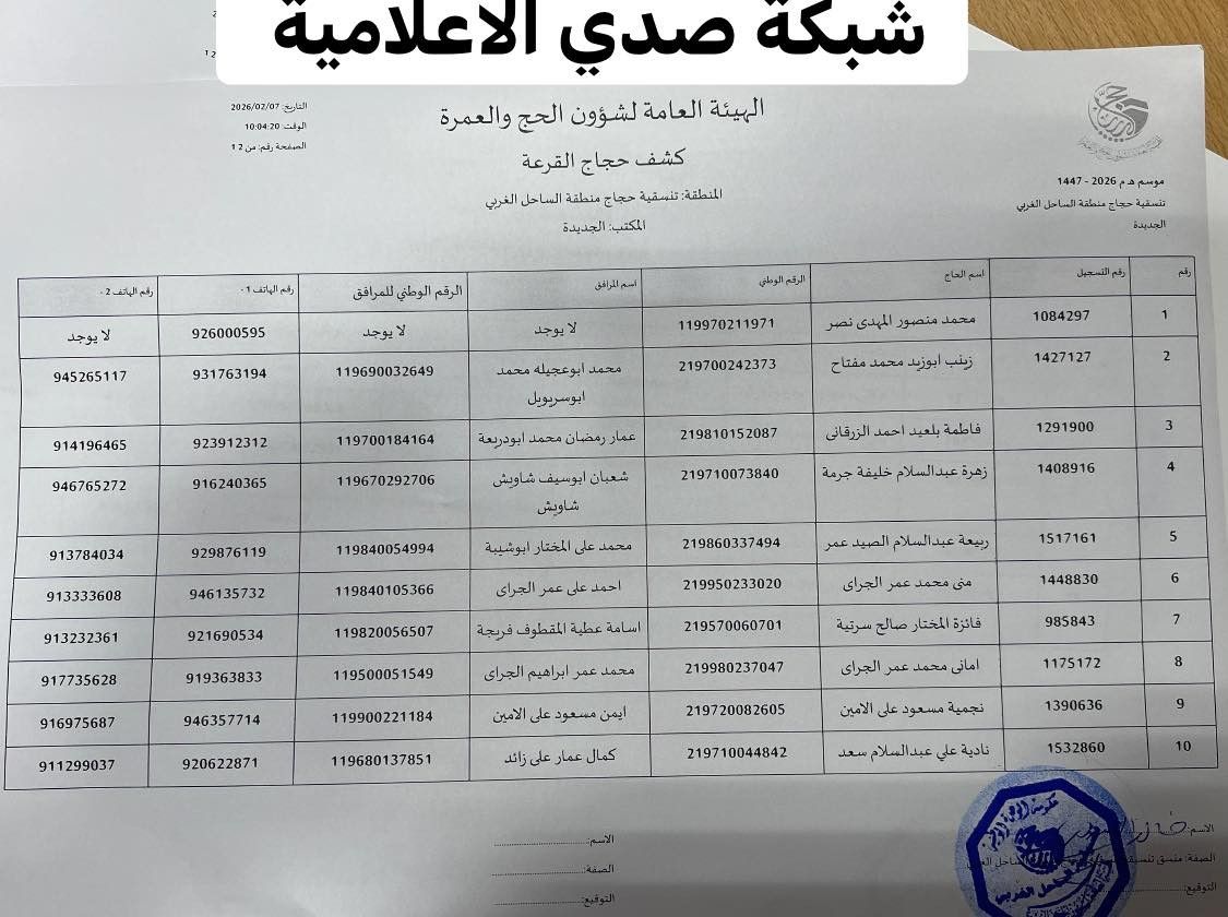 نتائج قرعة 2026 حجاج بلدية صبراتة