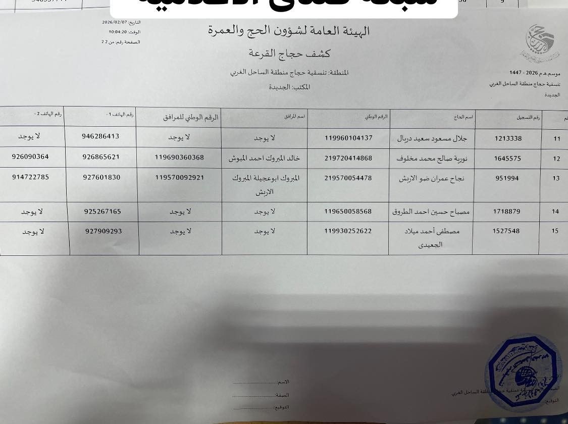 نتائج قرعة حجاج طرابلس 2026 لموسم حج 1447هـ