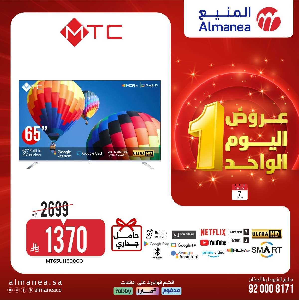 نقدم لكم احدث عروض المنيع السبت 7 فبراير 2026 الموافق 19 شعبان 1447هـ و تحتوي علي تشكيلة من الاجهزة الكهربائية منها شاشات التلفزيون و اجهزة التكيفات و العصارات