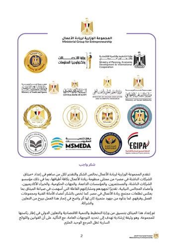 جدير بالذكر أن "ميثاق الشركات الناشئة في مصر"، يُعد الأول من نوعه وقد أعدته المجموعة الوزارية لريادة الأعمال، بعد عام من المشاورات بمشاركة 15 جهة وطنية وأكثر من 250 ممثلًا من رواد الأعمال ومؤسسي الشركات الناشئة، والمستثمرين المحليين والدوليين بالإضافة إلى المؤسسات الداعمة، والجهات الحكومية، والخبراء الأكاديميين، وأعضاء المجالس النيابية.