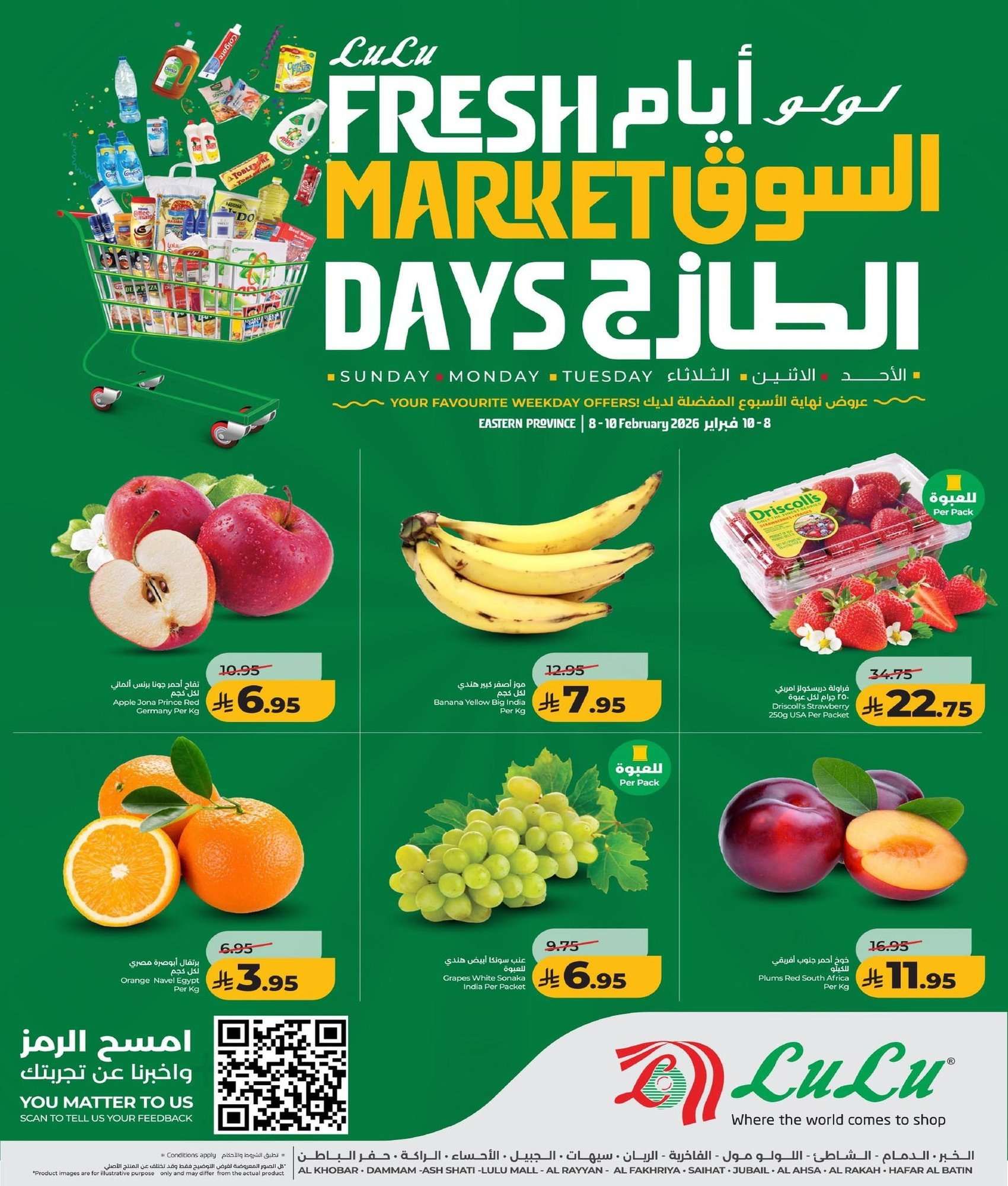 عروض لولو المنطقة الشرقية 3 ايام فقط من 8 إلى 10 فبراير 2026 أيام التسوق الطازج في المنطقة الشرقية استمتع بثلاثة أيام من العروض القوية على الاحتياجات اليومية