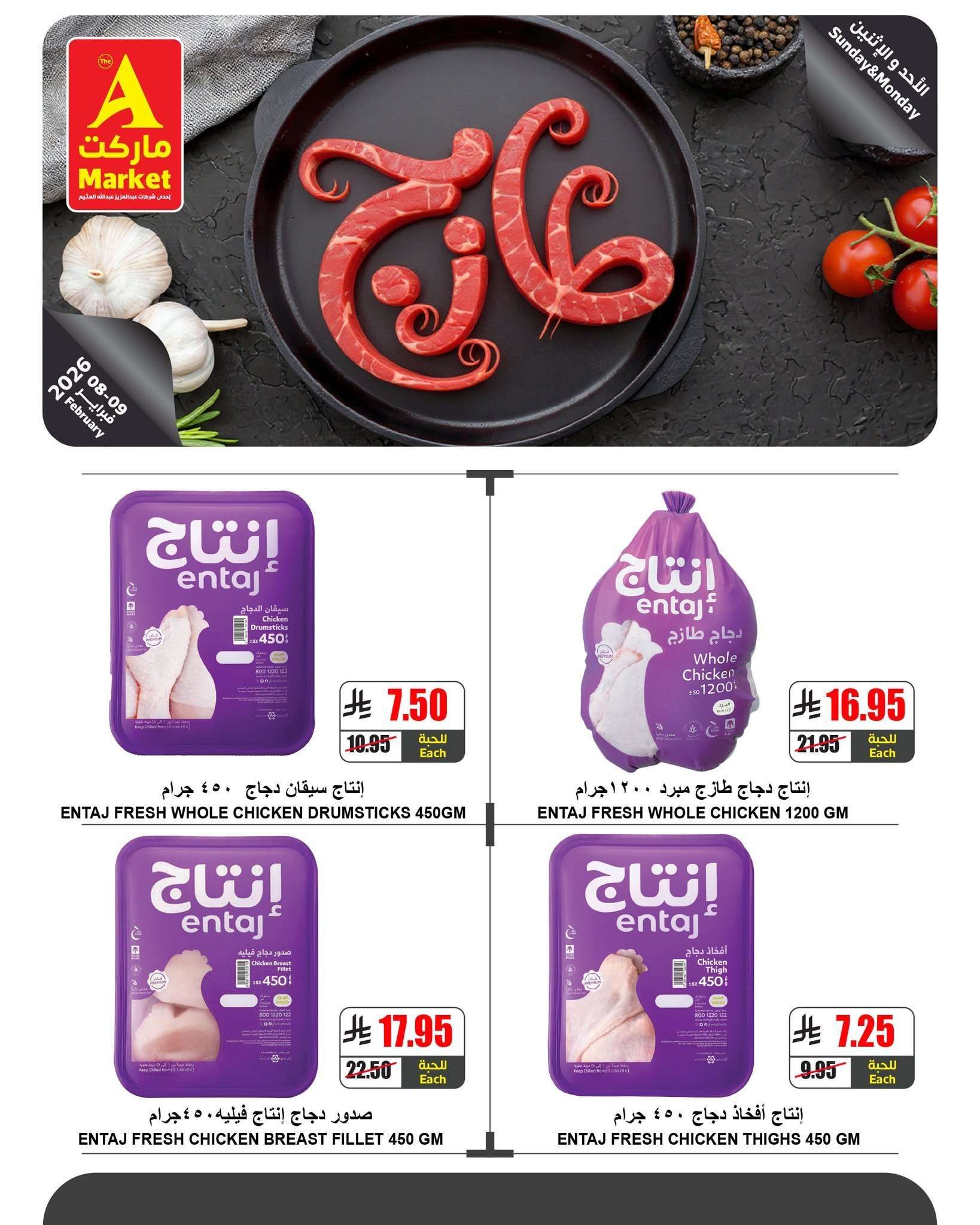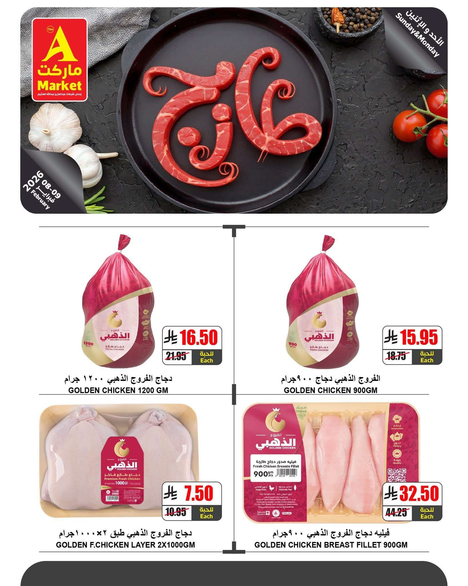 ويوفر عروض ايه ماركت الرياض اليوم ايضا صدور دجاج مدخنة ودجاج الفروج الذهبي ودواجن إنتاج بمختلف قطعياتها من صدور وأفخاذ وسيقان بالإضافة إلى اللحوم البرازيلية المبردة مثل المكعبات والمفروم والبرجر والسجق المصري