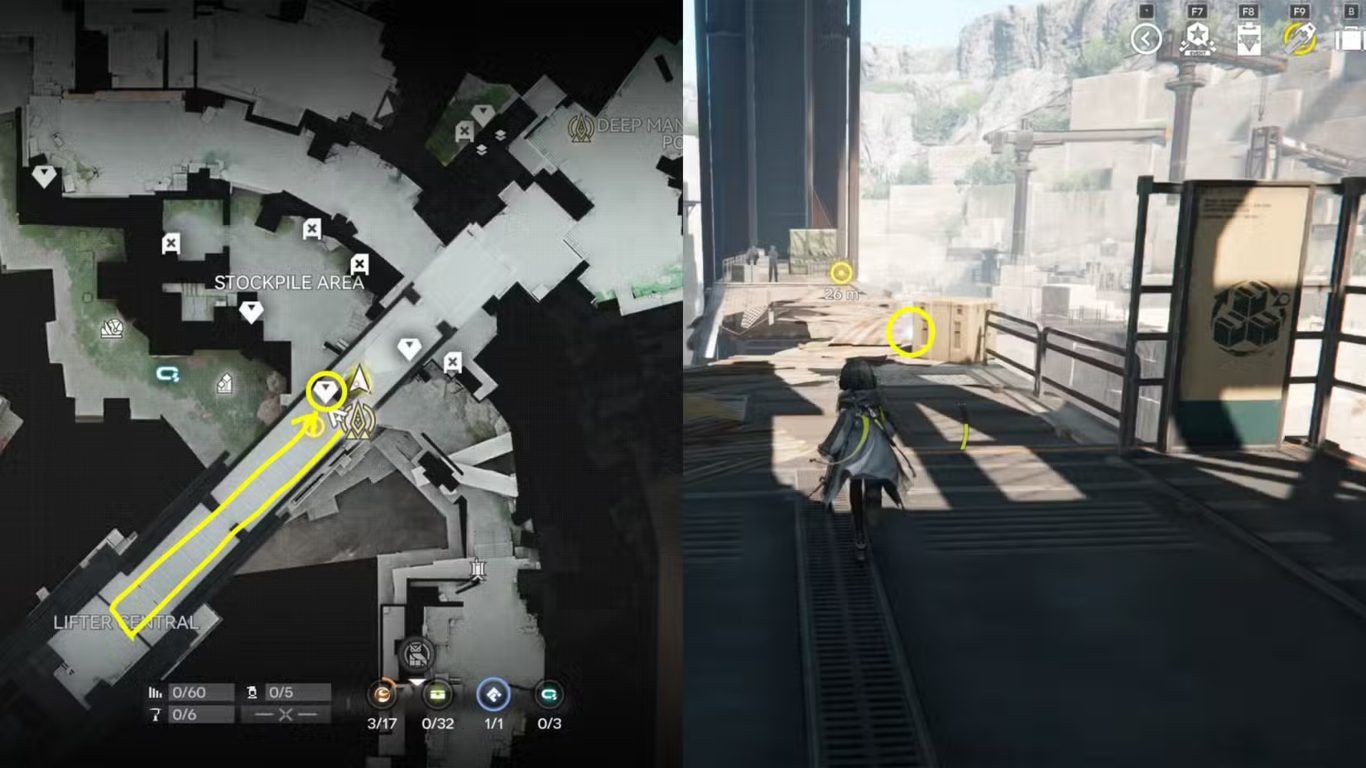 يعتمد هذا الموقع بشكل أساسي على استغلال البيئة العمودية وفهم تصميم Stockpile Area الذي يشجع اللاعب على التسلق والاستكشاف الرأسي بدلا من الاكتفاء بالمسارات السفلية.
