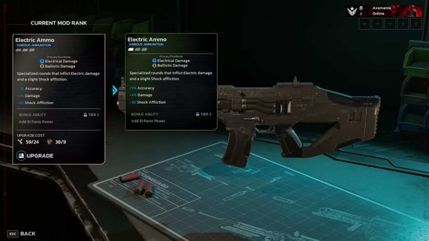 يمكن تغيير نوع الضرر الخاص بالسلاح من خلال تجهيز Ammo mods عبر نظام تخصيص الأسلحة. يتم التوجه إلى Armory داخل Stronghold، ثم تصنيع تعديل Ammo من النوع الذي تريده وتثبيته على السلاح.