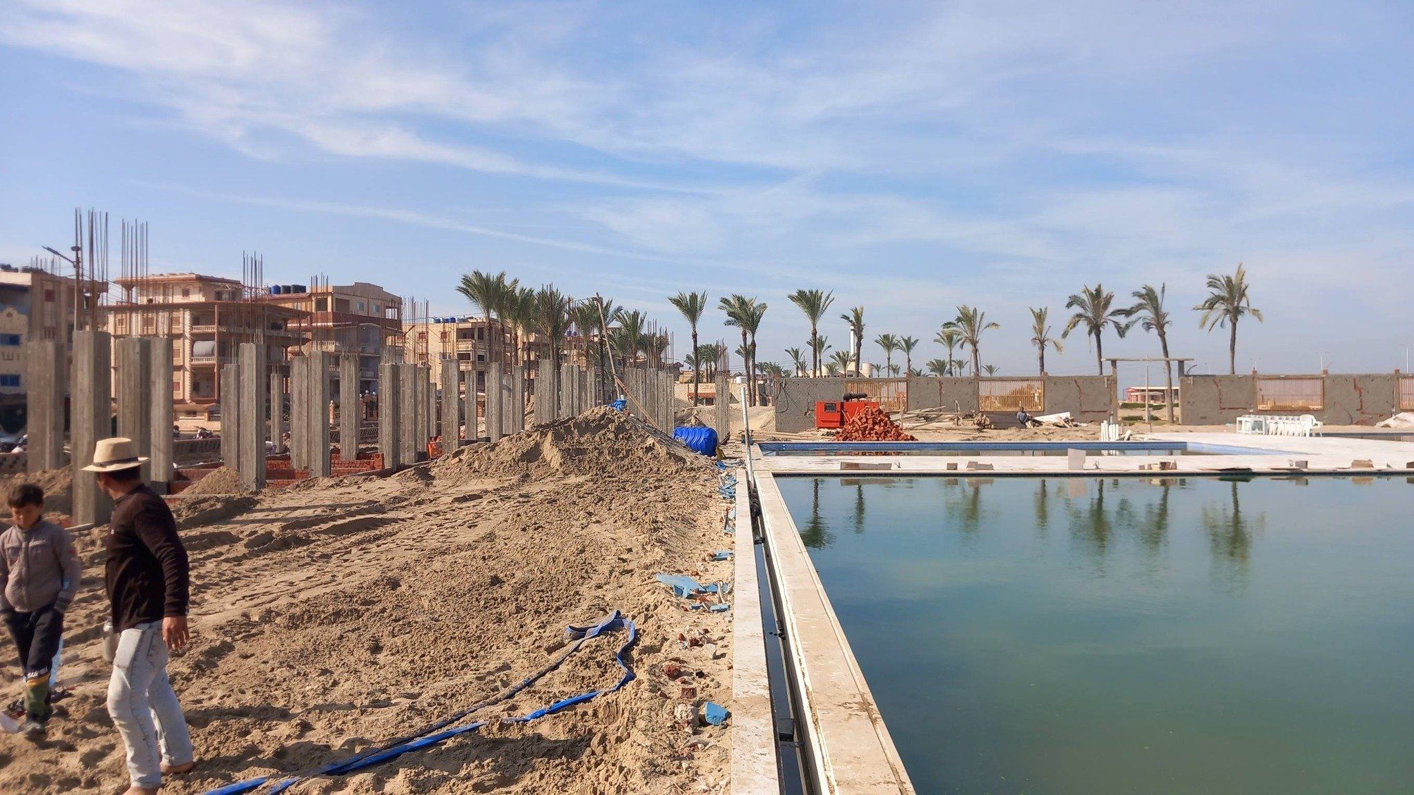 جانب من انشاءات أكوا بارك بشاطئ النرجس