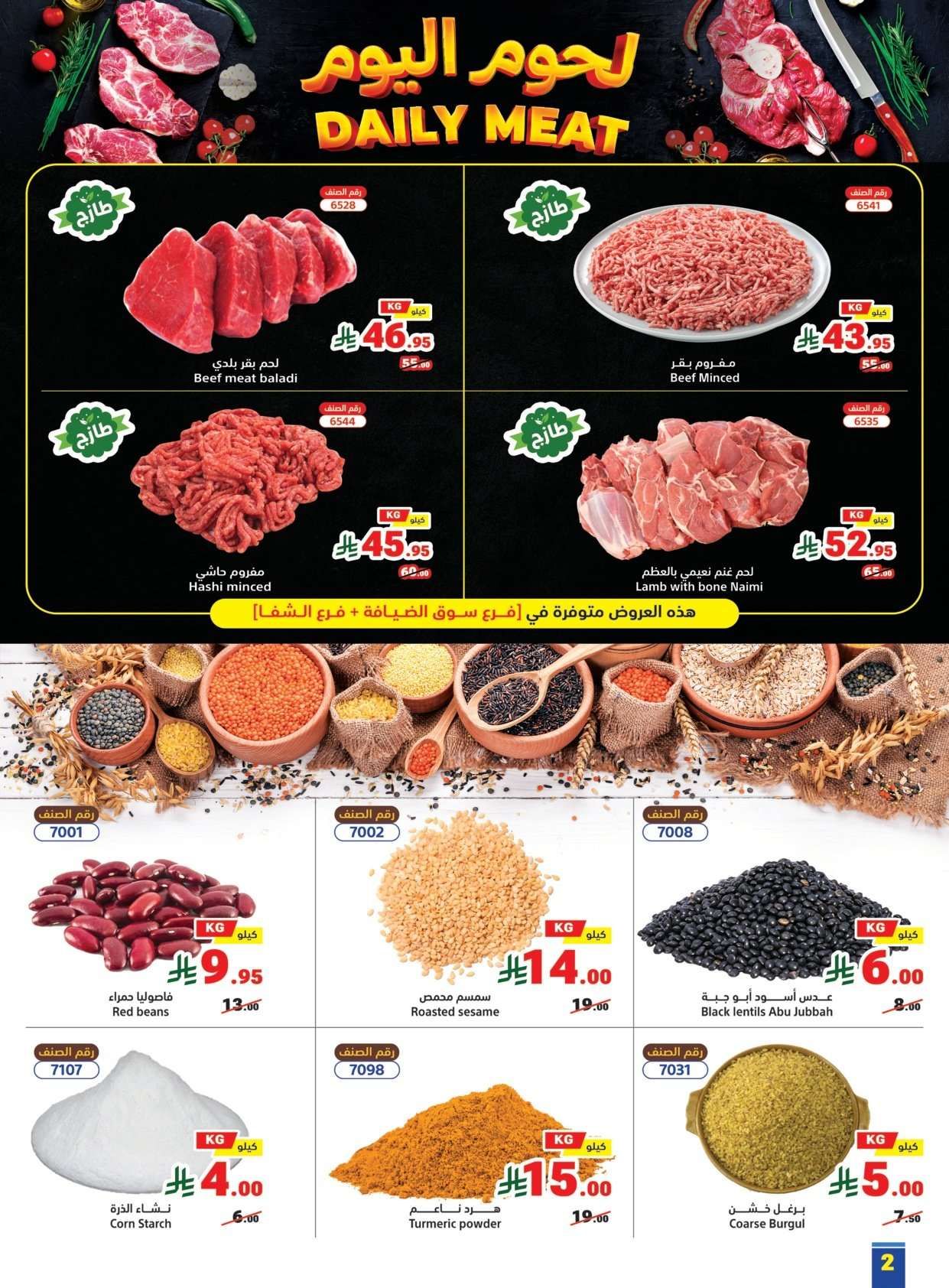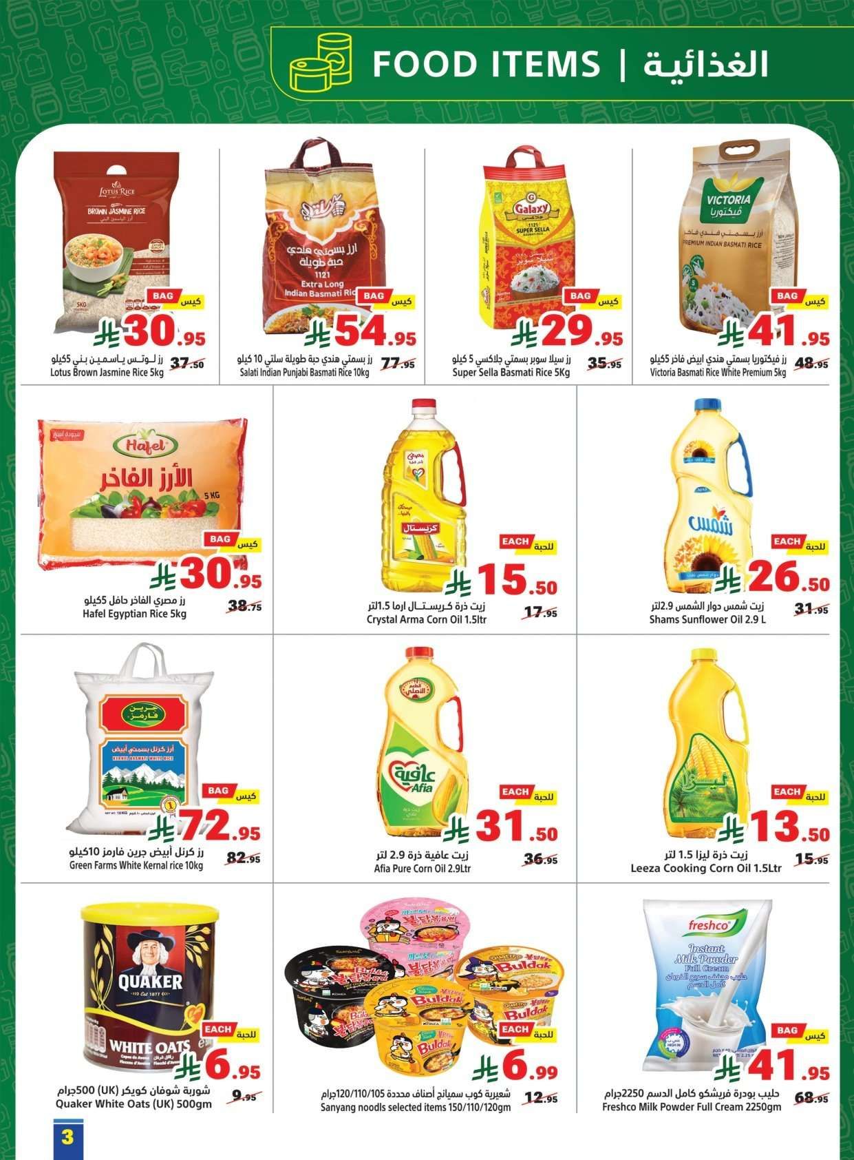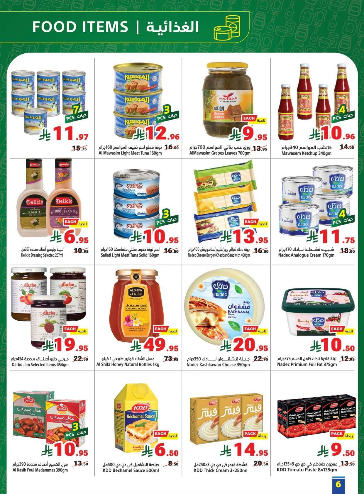 تشمل ايضا عروض متاجر السعودية اليوم علي البقوليات والحبوب والبهارات كما تتضمن القائمة منتجات معلبة متنوعة كالتونة وورق العنب والأجبان ومستلزمات الحلويات مثل كريم الكراميل والبف باستري