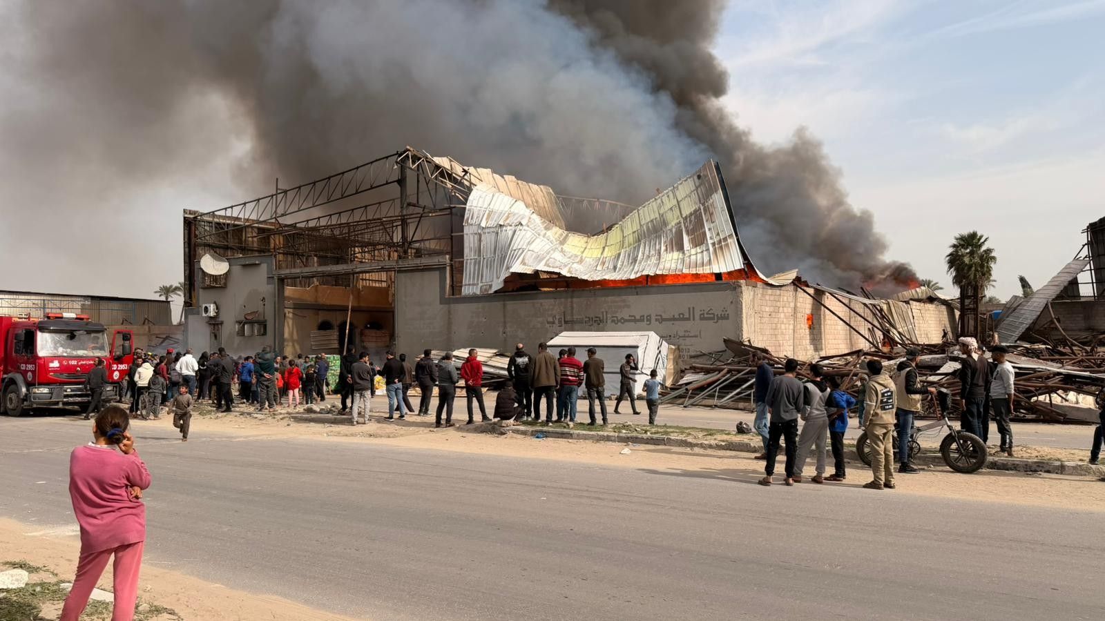 أعلنت مديرية الدفاع المدني، مساء اليوم، الأحد 8 فبراير 2026 ، عن اندلاع حريق كبير داخل منشأة "بركس" تعود لعائلة (الدردساوي)، تقع بالقرب من مفترق المصدر في المحافظة الوسطى.