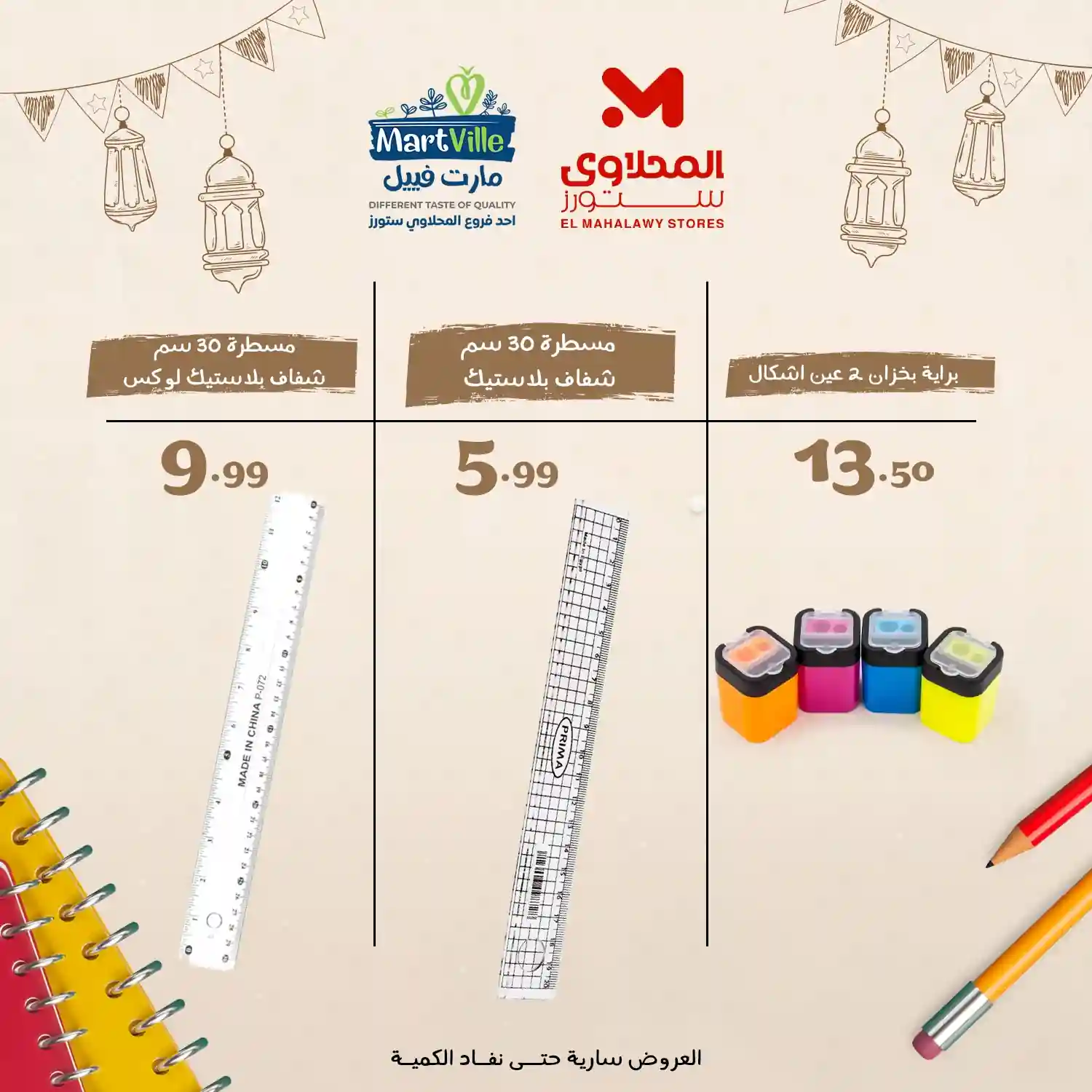 عروض المحلاوى ستورز العاشر ومسطرد من 9 فبراير 2026 خصومات الادوات المدرسية