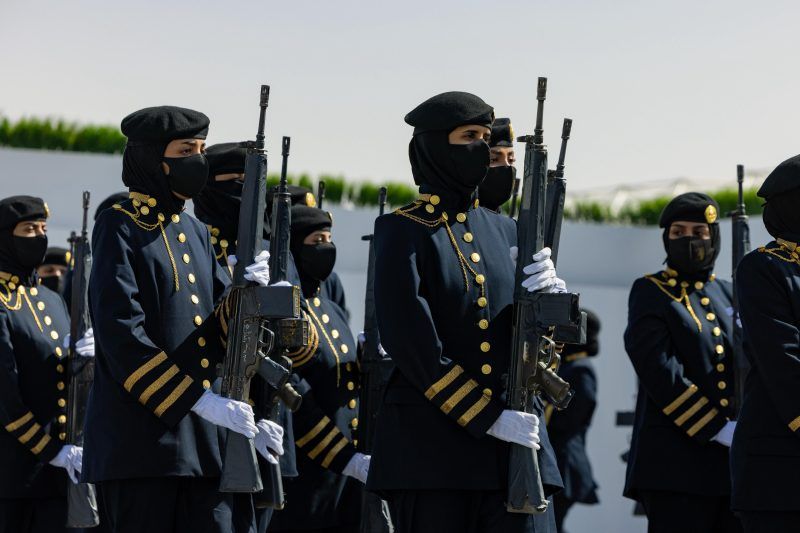 يستعرض المعهد النسائي بالأمن العام، لزوار جناح وزارة الداخلية بمعرض الدفاع العالمي 2026 م، في مدينة الرياض، الذي يقام في الفترة من (8) إلى (12) فبراير الجاري، برعاية خادم الحرمين الشريفين الملك سلمان بن عبدالعزيز آل سعود، (الفصيل الصامت) لتشكيل مهارات التعامل الاستعراضي باستخدام السلاح مع الفرقة الموسيقية.