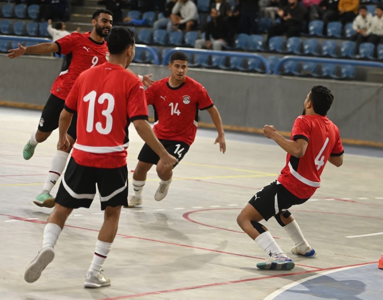 تحول استاد القاهرة الدولي إلى ساحة من الفرح العارم فور إطلاق صافرة النهاية، حيث انطلقت احتفالات صاخبة للاعبي المنتخب الوطني لكرة الصالات والجهاز الفني مع الجماهير التي احتشدت لمؤازرة الفراعنة.