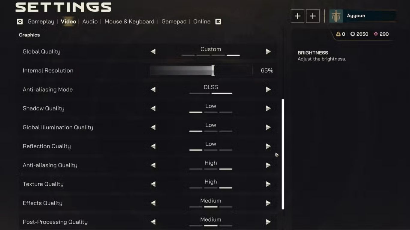 | Graphics | Internal Resolution | 65 percent | كافية لتفعيل وضع الجودة عند استخدام Nvidia DLSS ويمكن خفضها إلى 50 percent لوضع الأداء |