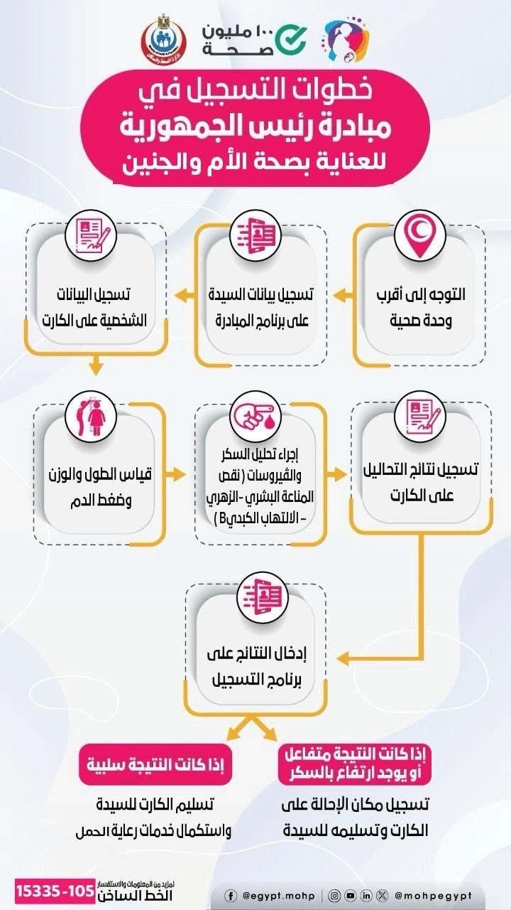 وشددت الوزارة على أن المبادرة تُقدم خدماتها مجانًا داخل جميع الوحدات الصحية، داعية السيدات الحوامل إلى الاستفادة من المبادرة، مع إمكانية الاستفسار عبر الخط الساخن 15335 للحصول على المزيد من المعلومات.