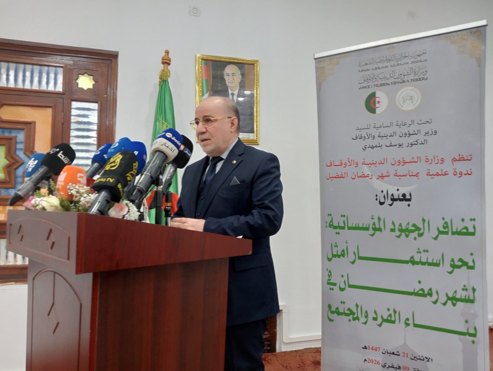 كما أوضح أن شهر رمضان يمثل فرصة لترسيخ القيم الدينية والإنسانية، وتصحيح السلوكات. وتعزيز ثقافة الاعتدال والتكافل الاجتماعي، مثمّنًا دور الأئمة والمرشدات الدينيات. في توعية المجتمع، إلى جانب جهود مختلف القطاعات الشريكة في مجالات الصحة، والتضامن. والإعلام، والبيئة، والسلامة المرورية، بما يضمن شهرًا متضامنًا وآمنًا يعكس القيم الأصيلة للمجتمع الجزائري.