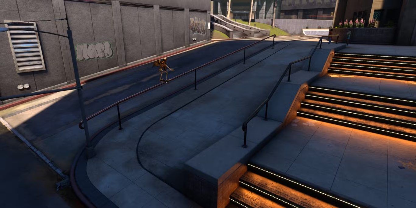 عند تنفيذ Grind بنجاح على السكك الأربع ضمن الوقت المحدد، يكتمل الهدف ويتم عرض مشهد سينمائي لحدوث زلزال يضرب المستوى، مما يؤدي إلى تحطّم الطريق السريع فوق منطقة الساحة. بعد ذلك، يمكن القفز إلى المبنى الموجود في الجهة الخلفية اليمنى من المستوى بالنسبة لنقطة الظهور للوصول إلى الطريق السريع المنهار، والذي يقود بدوره إلى شعار Iron Galaxy الخاص بالمستوى.