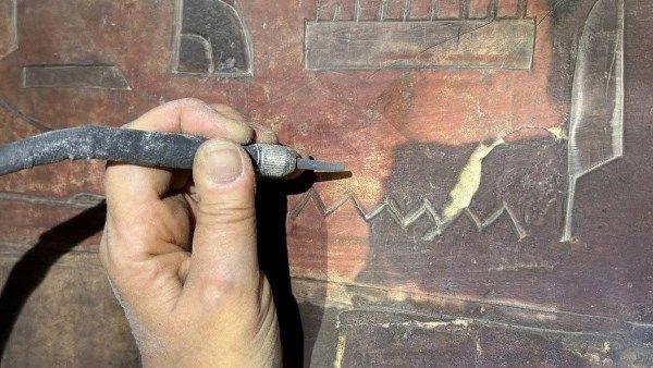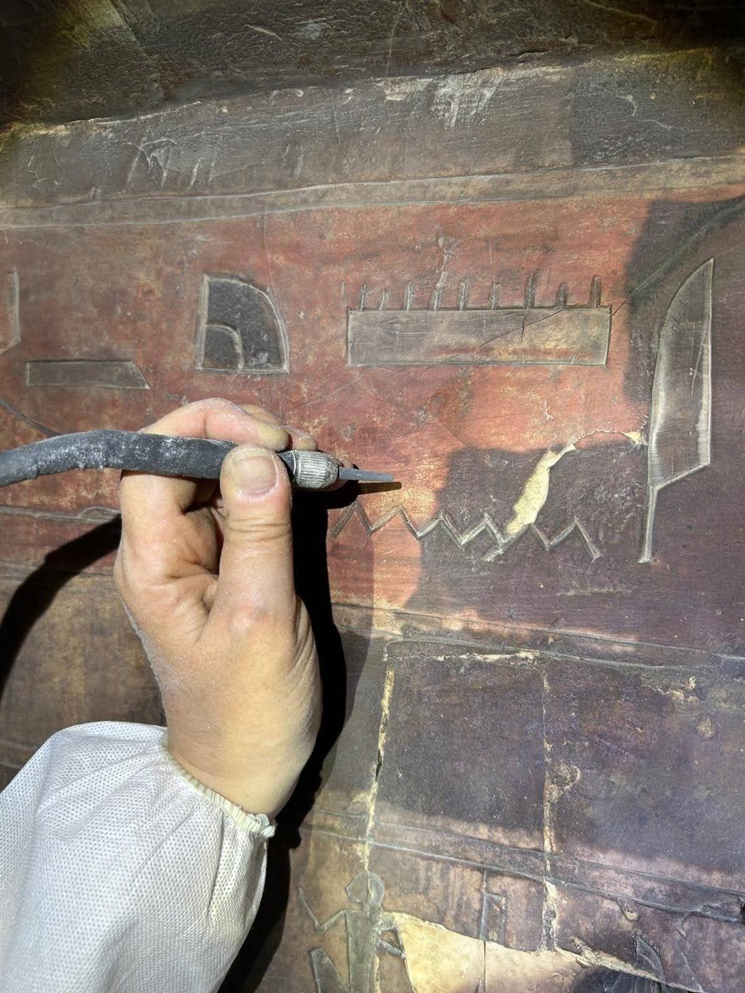 أنهت فرق الترميم المتخصصة تنظيف جدران القاعة الثانية من مقبرة بادي آمون أوبت بالأقصر، باستخدام أحدث التقنيات العلمية “ميكرو أبراسيون”، حفاظاً على الآثر وقيمتها ودون التعرض لأى مخاطر.