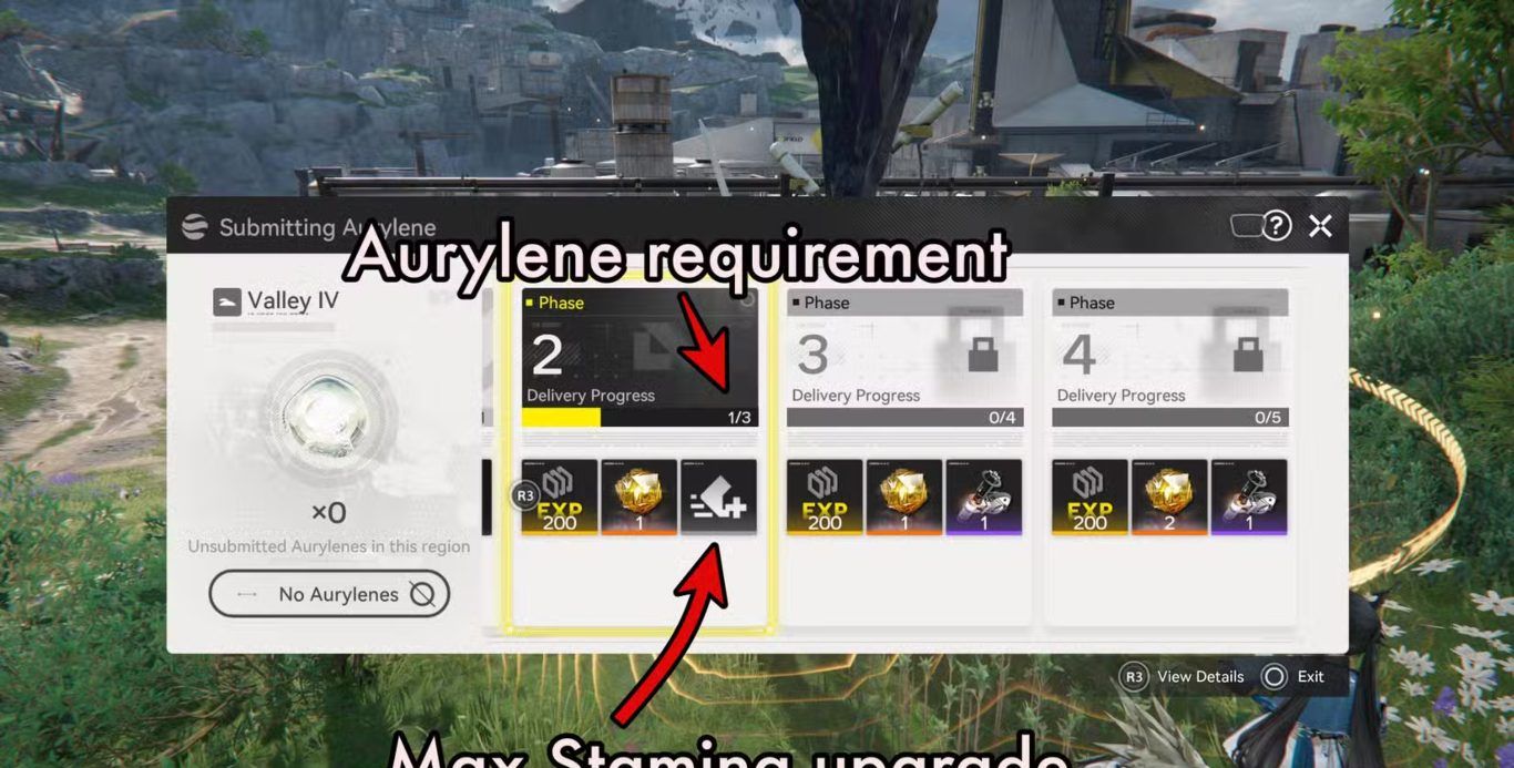 تعتمد هذه المراحل على نظام تصاعدي حيث تتطلب كل مرحلة تسليم عدد أكبر من Aurylene مقارنة بالمرحلة السابقة مما يشجع اللاعب على الاستمرار في الاستكشاف وجمع المزيد من هذه العناصر النادرة.