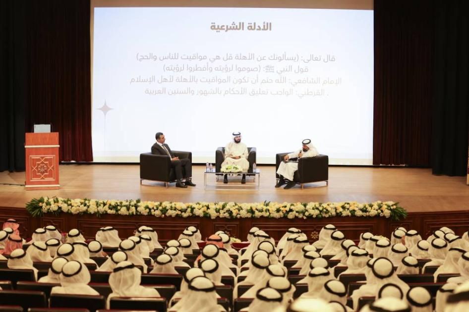 وتضمنت الندوة عرض مادة مرئية تعريفية حول المواقيت والأهلة، أعقبها انعقاد جلستين علميتين، ناقشتا التقويم القمري، وحسابات الأهلة، وثبوت بدايات الشهور، ومواقيت الصلاة من المنظورين الشرعي والفلكي، بما يعكس التكامل بين العلم والدين في معالجة القضايا ذات الصلة بالعبادات.