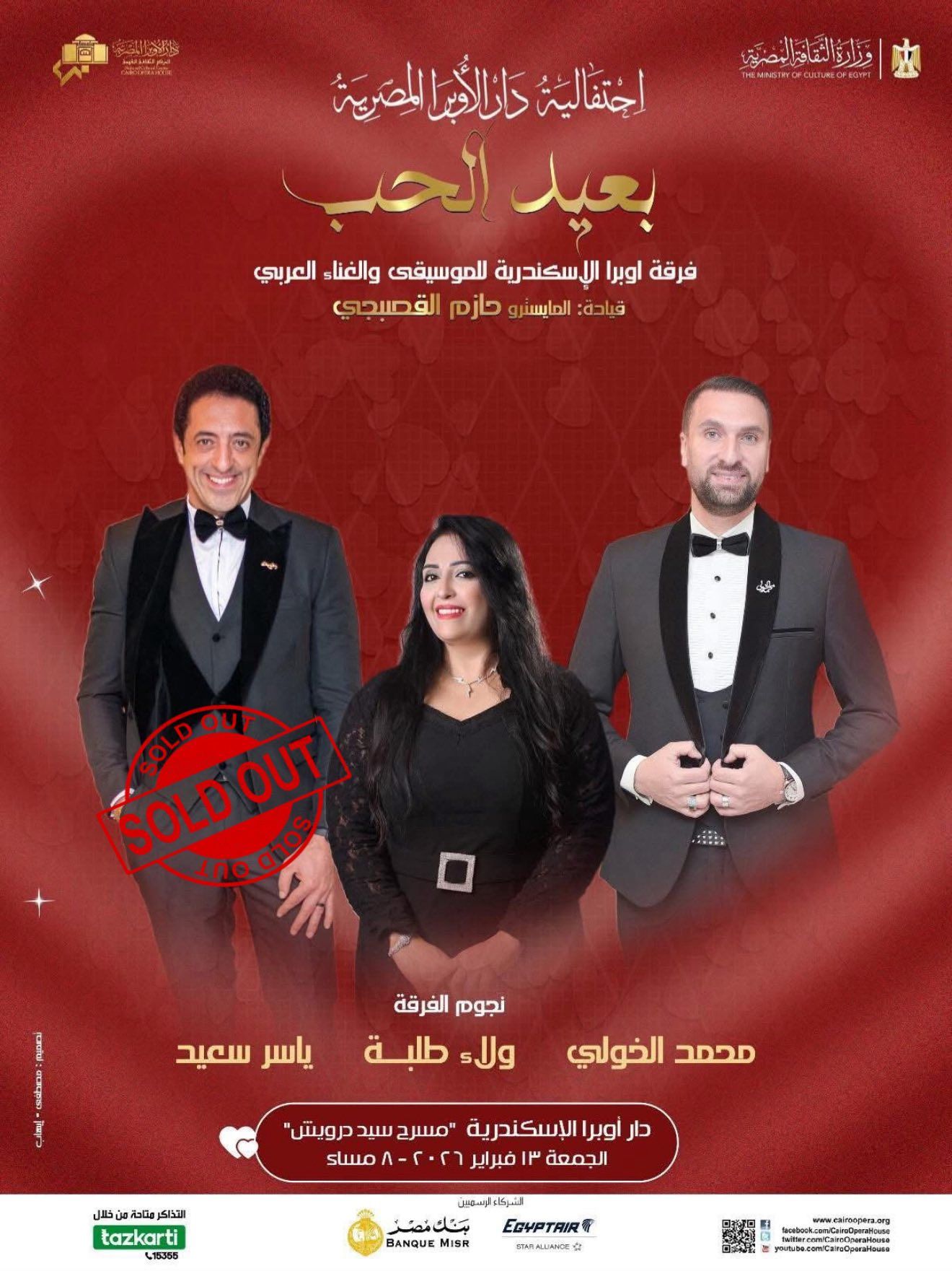 أعلنت دار الاوبرا المصرية بقيادة دكتور علاء عبد السلام بنفاذ تذاكر حفل عيد الحب الذى يقام يوم 13 فبراير على مسرح سيد درويش (أوبرا الإسكندرية). ويشارك فى الحفل نجوم الاوبرا كل من ياسر سعيد وولاء طلبة ومحمد الخولى بجانب الفنانة الكبيرة نادية مصطفى بقيادة المايسترو حازم القصبجي.