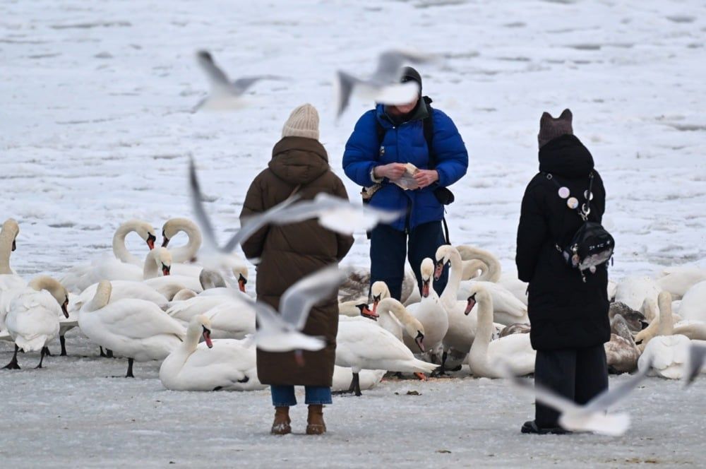 الطيور المهاجرة تهبط على بحر البلطيق
